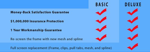 The chart below explains the two screen repair packages that we offer. All screen repair comes with our 100% Money-Back Satisfaction Guarantee and 1 Year Workmanship Guarantee. Prices start at only $129.